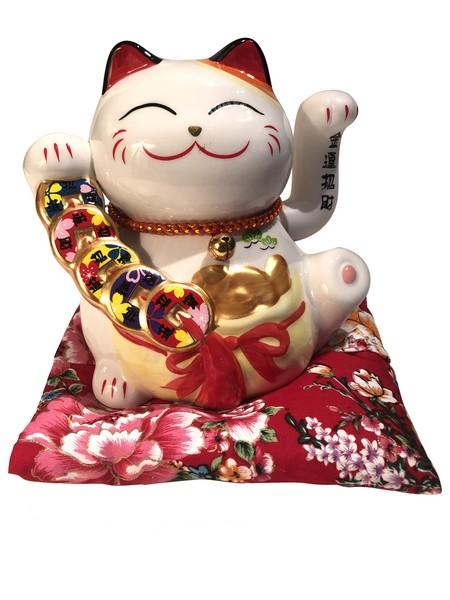 Maneki Neko, integető (köszönő) macska, jó szerencsét, üzleti sikert hoz; mások szerint távol tartja a rossz üzleteket. Japán eredetű szimbólum.