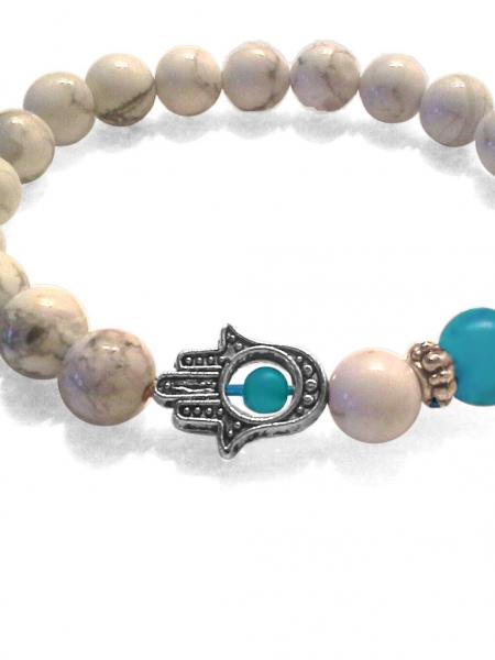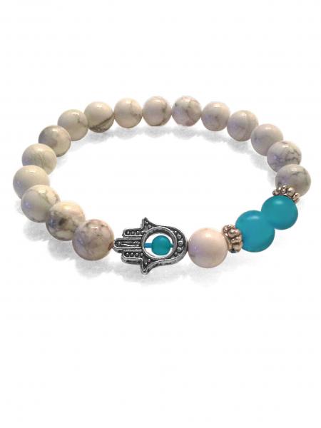 Fatima keze - gumis 8 mm-es ásvány karkötő medállal