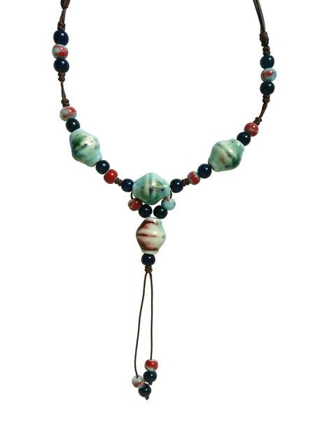 állítható hosszúságú szíjra fűzött kerámia gyöngyökből