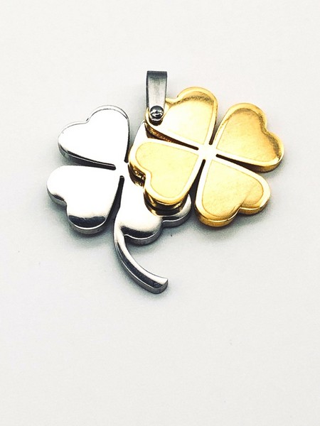 Különlegessége, hogy bár ez egyetlen medál, mégis két négylevelű lóheréből áll, melyek egy lánctartón vannak felfüggesztve. Ahogy mozogsz, az ezüst színű háttér előtt elmozdul az arany színű lóhere, amivel minden pillanatban más-más vizuális hatást kelt a medál.