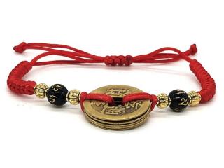 Fonál karkötő öt egymásra fektetett kínai érmével