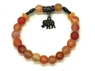 Gumis ásvány (achát) karkötő fém elefánt medállal