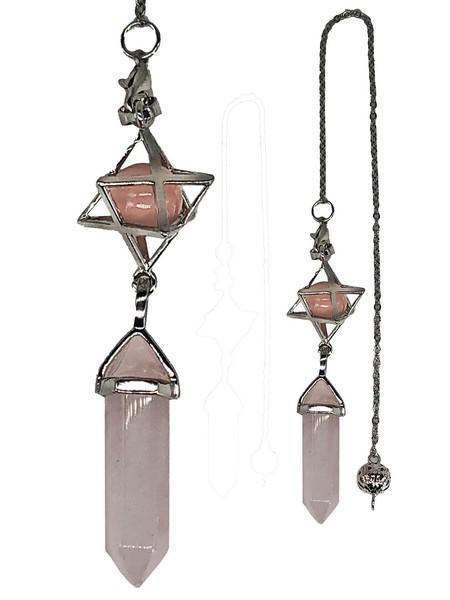 Ásvány inga (hatlap hasáb rózsakvarc fejjel, merkaba medál kiegészítővel)