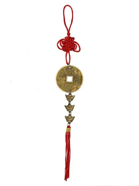 A függő medálja egy 5,5 cm átmérőjű kínai érme, egyik oldalán kínai szerencse jelekkel, másik oldalán a sárkány-főnix ábrázolás. Fölötte misztikus csomó, a véget nem érő jó szerencse szimbóluma. Alatta három Yuen Pao, a jelentős gazdagságért, és bojt, az áldások megsokszorozódásának szimbóluma található.