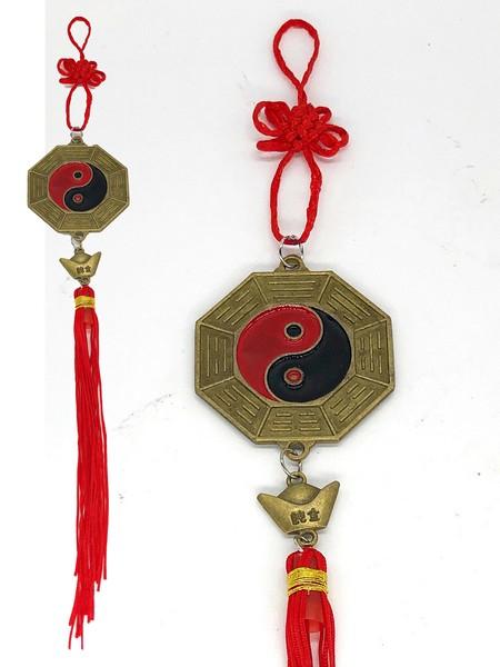 A medál egyik oldalán középen kör alakú tükör, körülötte a kínai horoszkóp tizenkét állatjegye. A medál másik oldalán középen az egység és harmónia Yin - Yang jele körülvéve a mágikus trigramokkal. A medál alatt a Yuen Pao a gazdagodást, anyagi gyarapodást szimbolizálja.