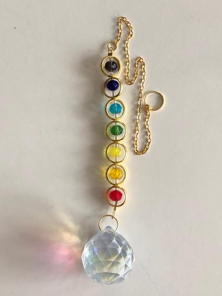 Csakra-harmonizáló kristály függő a hét csakra színeiben pompázó kristályokkal - ablakdísz
