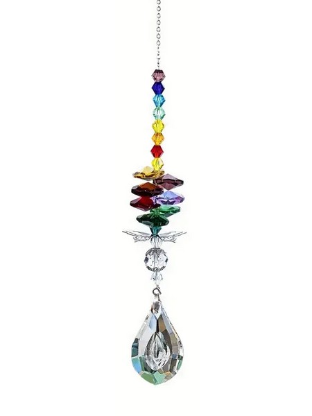 Csakra-harmonizáló kristály függő pillangó díszítéssel és kristály csokor medállal - ablakdísz