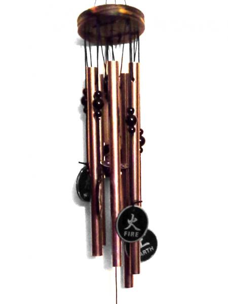Leírása: A szélcsengő bronz színű csövei egy fa korongra vannak felfüggesztve. Közöttük az ütőszáron fém korongon Yin-Yang jel trigramokkal körülvéve. Ez ütődik a csövekhez, így képezi a szélcsengő kellemes, fémes hangját. Az ütőszárat fa lapka tartja feszesen melynek mindkét oldalán a trigramokkal körülvett Yin-Yang jel látható. A szélcsengő csövei között külön szárakon az Öt Őselem (Fa, Tűz, Föld, Fém, Víz) kínai írásjegye, és angol neve olvasható. A trigramokkal körülvett Yin-Yang jel, valamint az Öt Őselem együttes jelenléte a teljes körű harmóniát szimbolizálja és erősíti.