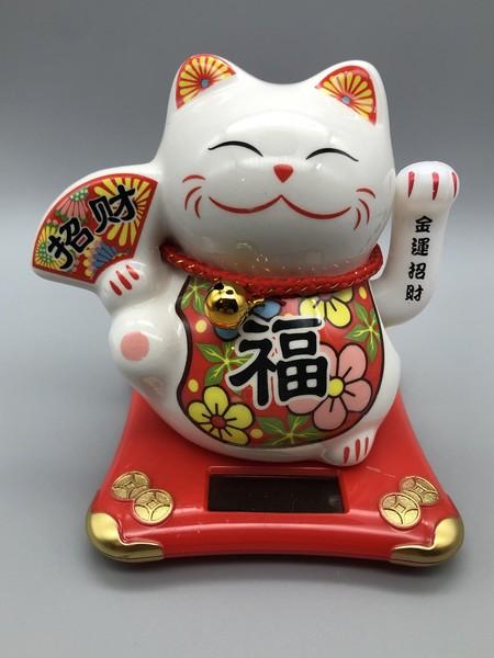 Maneki Neko - napelemes kerámia integető macska - 10 cm