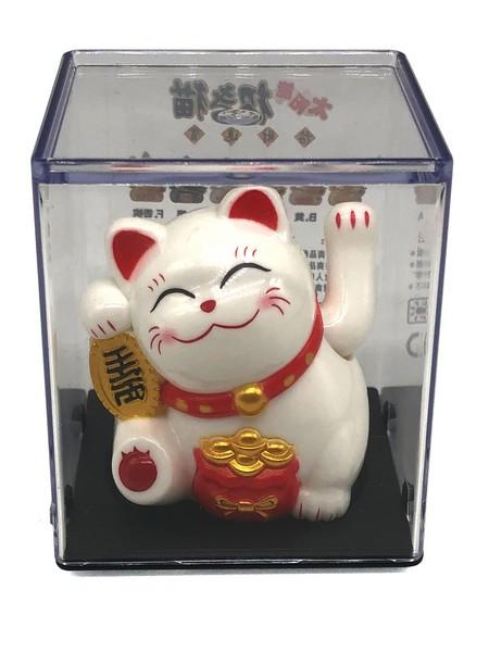 Maneki Neko - napelemes integető (köszönő) macska - 9 cm Szerencsét, üzleti sikert hoz, valamint távol tartja a rossz üzleteket. Japán eredetű szimbólum. (A doboz nem csomagolás, hanem a termék szerves része!) |